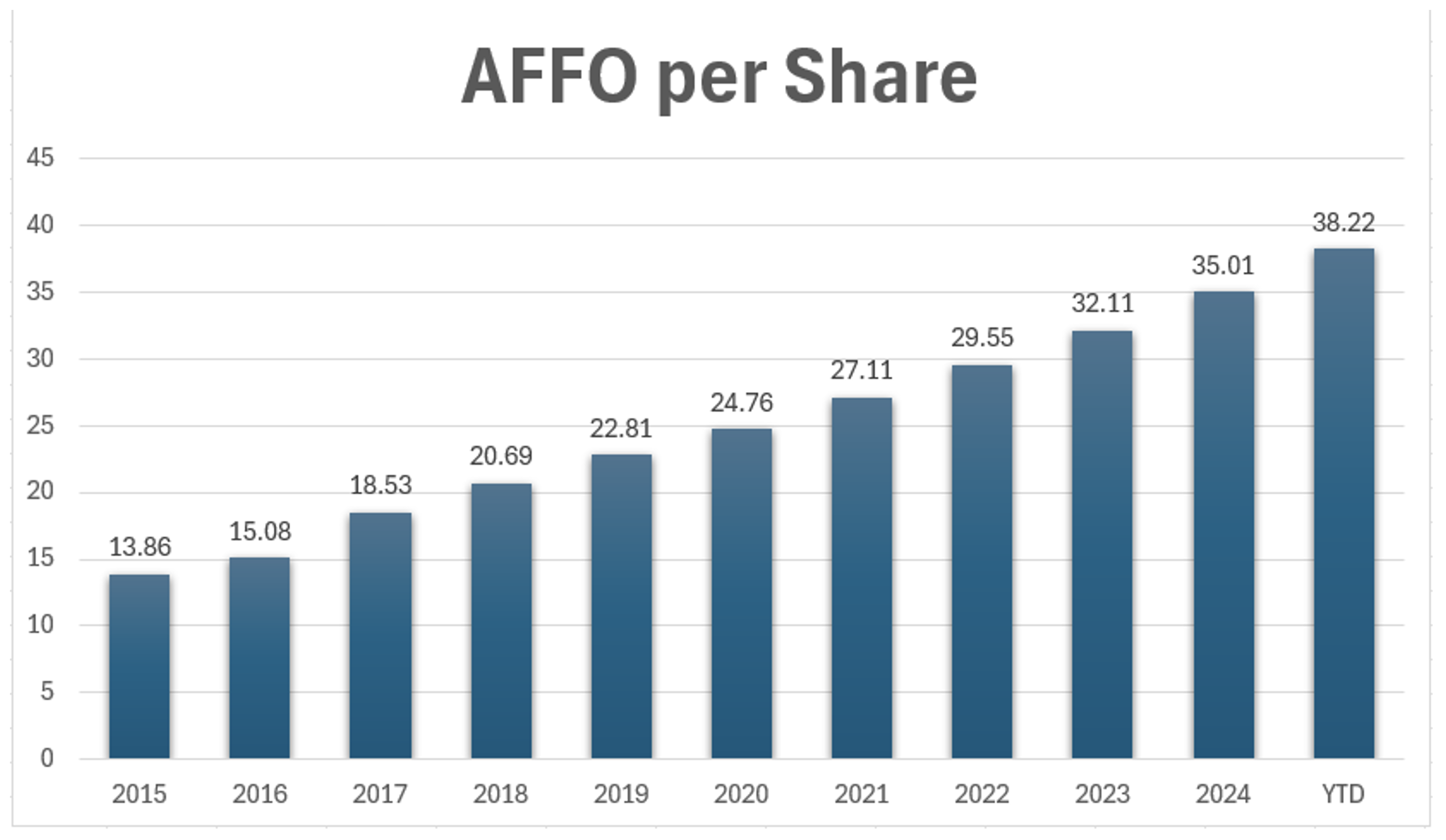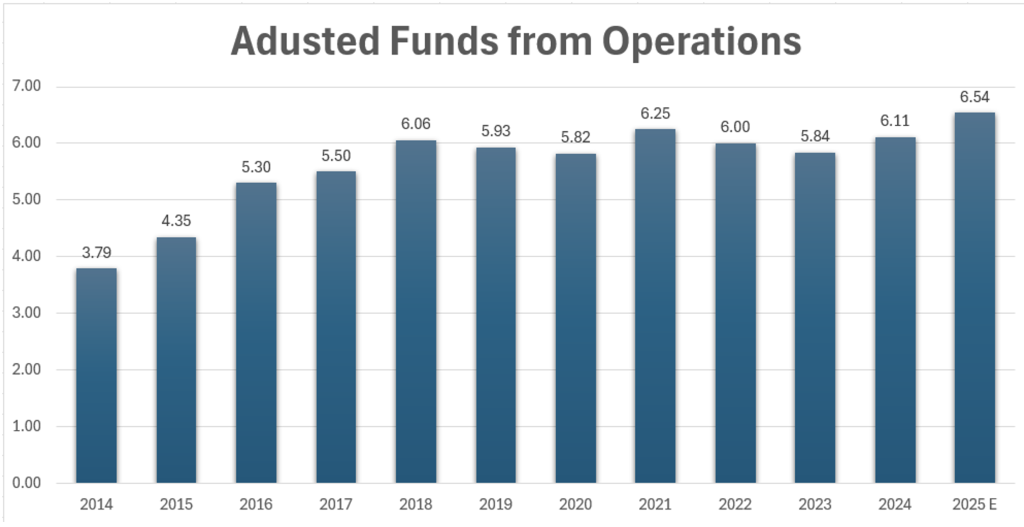 Since 2014, Digital Realty has generated steady adjusted funds from operations (“AFFO”), increasing at a 5.4% compound annual growth rate (“CAGR”). Analysts are forecasting a greater 8% in 2026 and 10% in 2027.