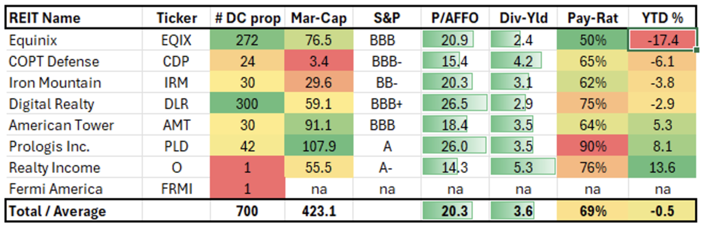 - Realty Income (O), a net-lease REIT, with one after a joint venture deal with Digital Realty