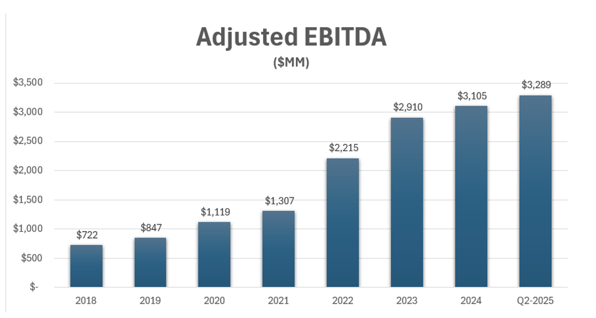 The Caesars’ split gave it an immediate 19 gaming facilities and four golf courses. Seven and a half years later, this world-class gaming REIT boasts a whopping 54 gaming properties and 39 other experiential assets leased to a spread of 13 tenants.