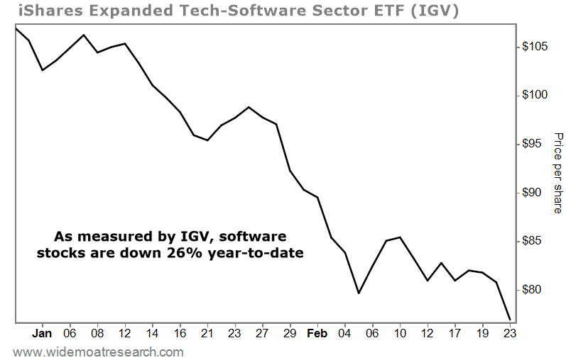 As a result, once-vaunted software stocks are dirt-cheap relative to their historic multiples.