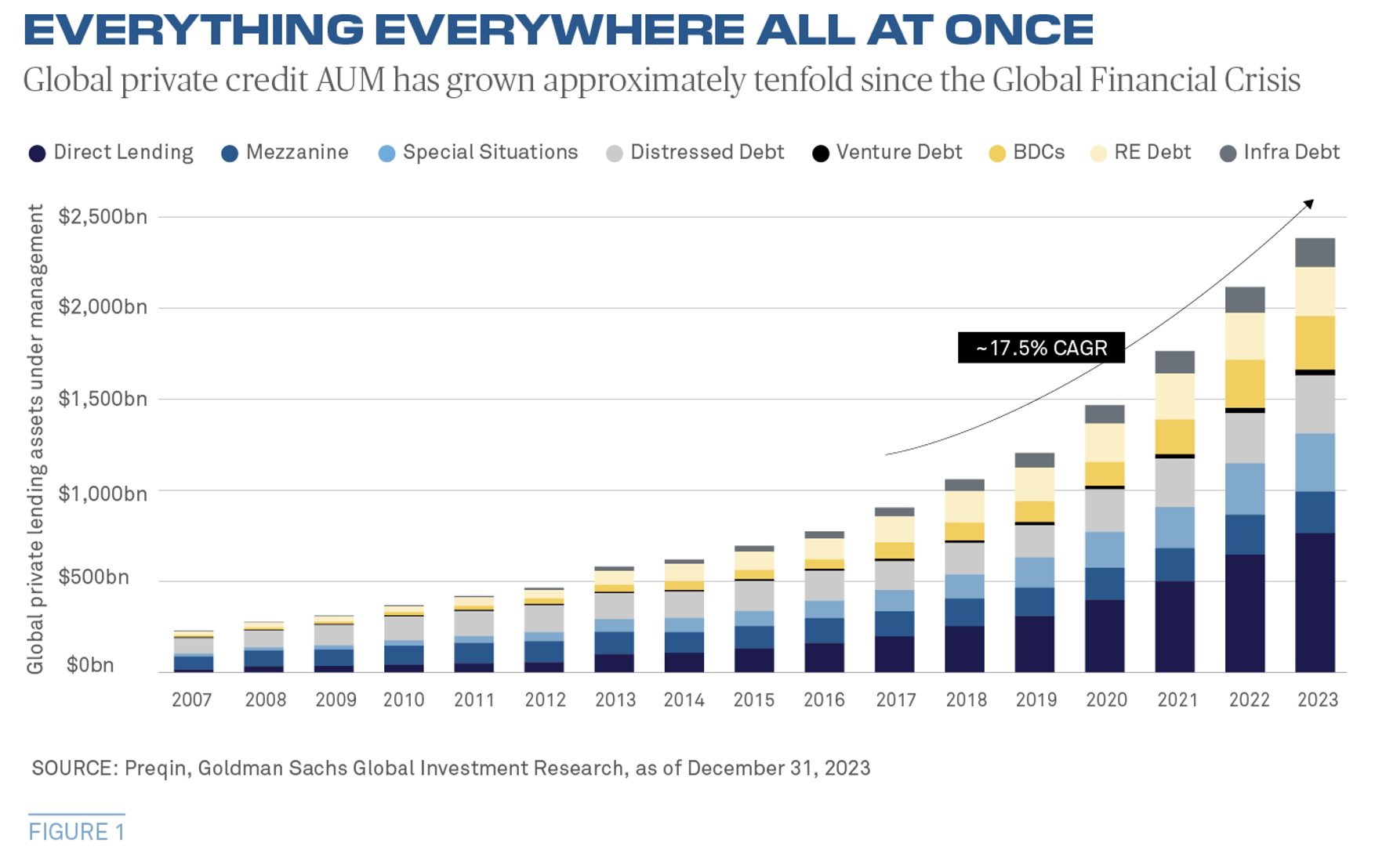 Private credit is. The above chart shows the incredible story of private credit growing from a rounding error 20 years ago to about $2.5 trillion in assets today. This is the engine powering millions of businesses all over the country.