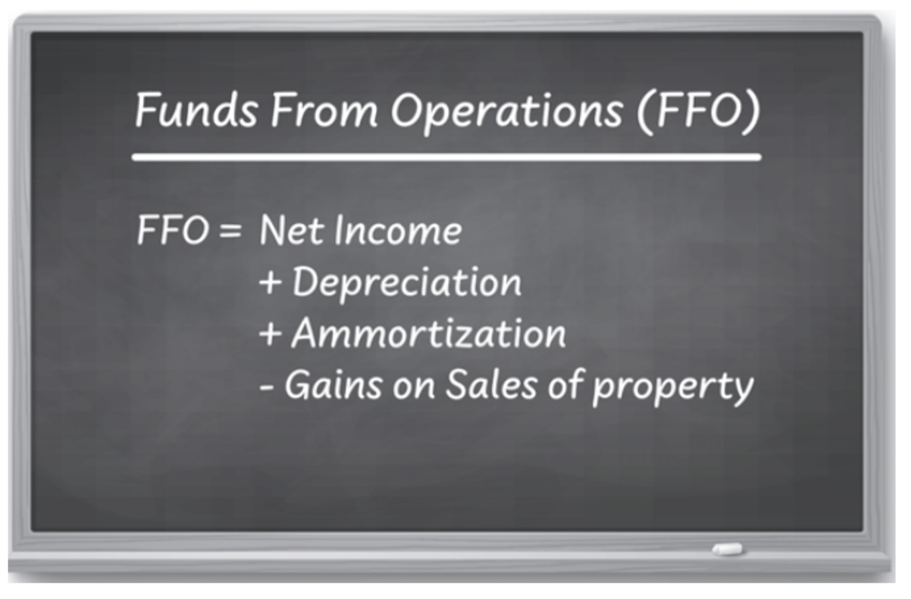 As such, the typical stock assessment, earnings per share (“EPS”), is of little value. So, the term “funds from operations,” or FFO, came into existence instead. It’s calculated as: