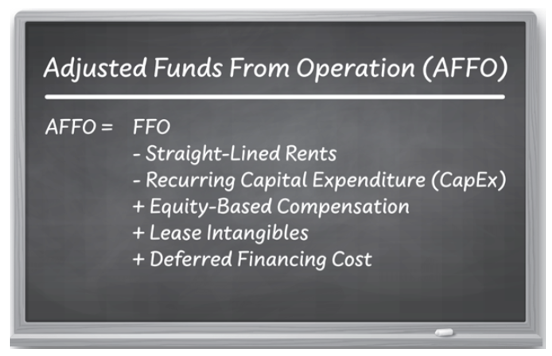 These are capital expenditures, yet they’re not automatically taken into account in basic real estate reporting… even though they should be. AFFO fixes that problem, giving a more accurate idea of what’s really going on.