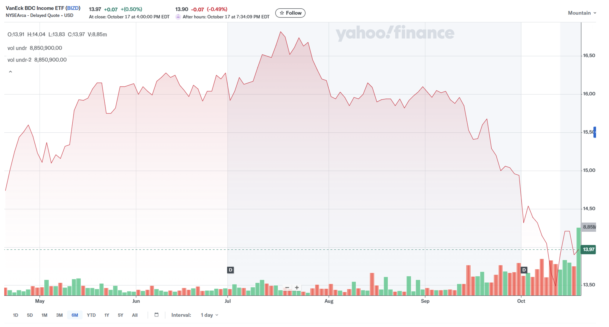 But it’s still a whole lot better than BDC performance. Since mid-September, especially, BIZD has fallen to a new 52-week low under $14.