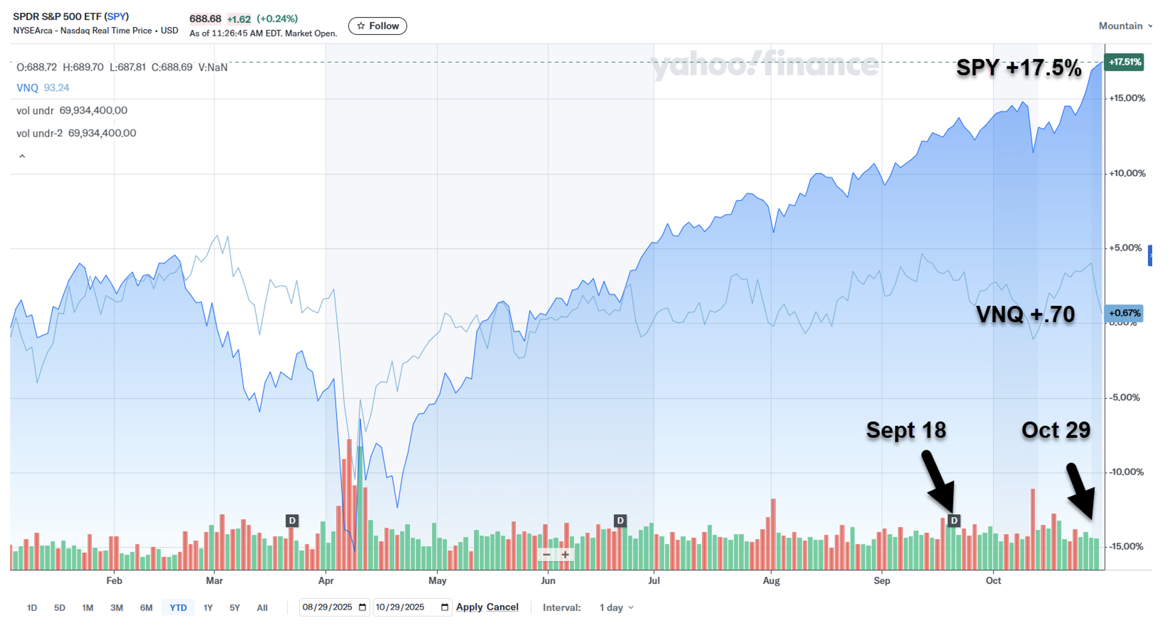 While the SPDR S&P 500 Fund (SPY) has soared 17.5% year to date, hitting new highs in the process… shares of REITs have lagged, up a mere 0.7% so far.