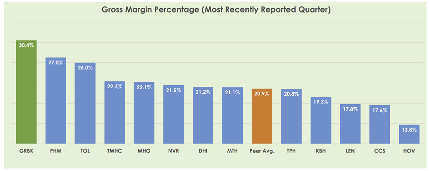Even so, Green Brick has carved out some unique competitive advantages that have enabled it to generate industry-leading profit margins of over 30%. That bests even Toll Brothers (TOL), which is widely considered to be the “gold standard” homebuilder performer.