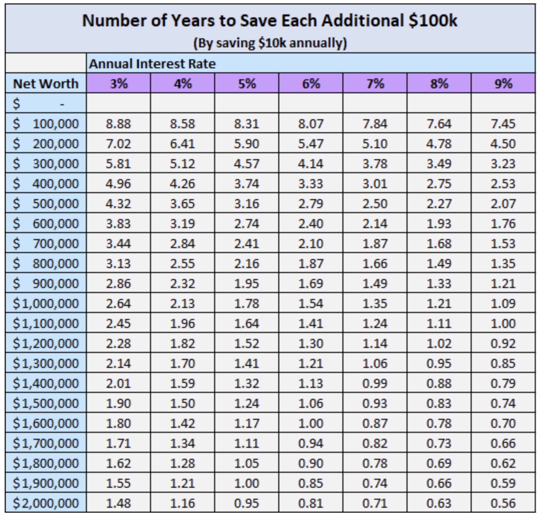 From there, time begins to do more of the work for you. Have a look at the table below.