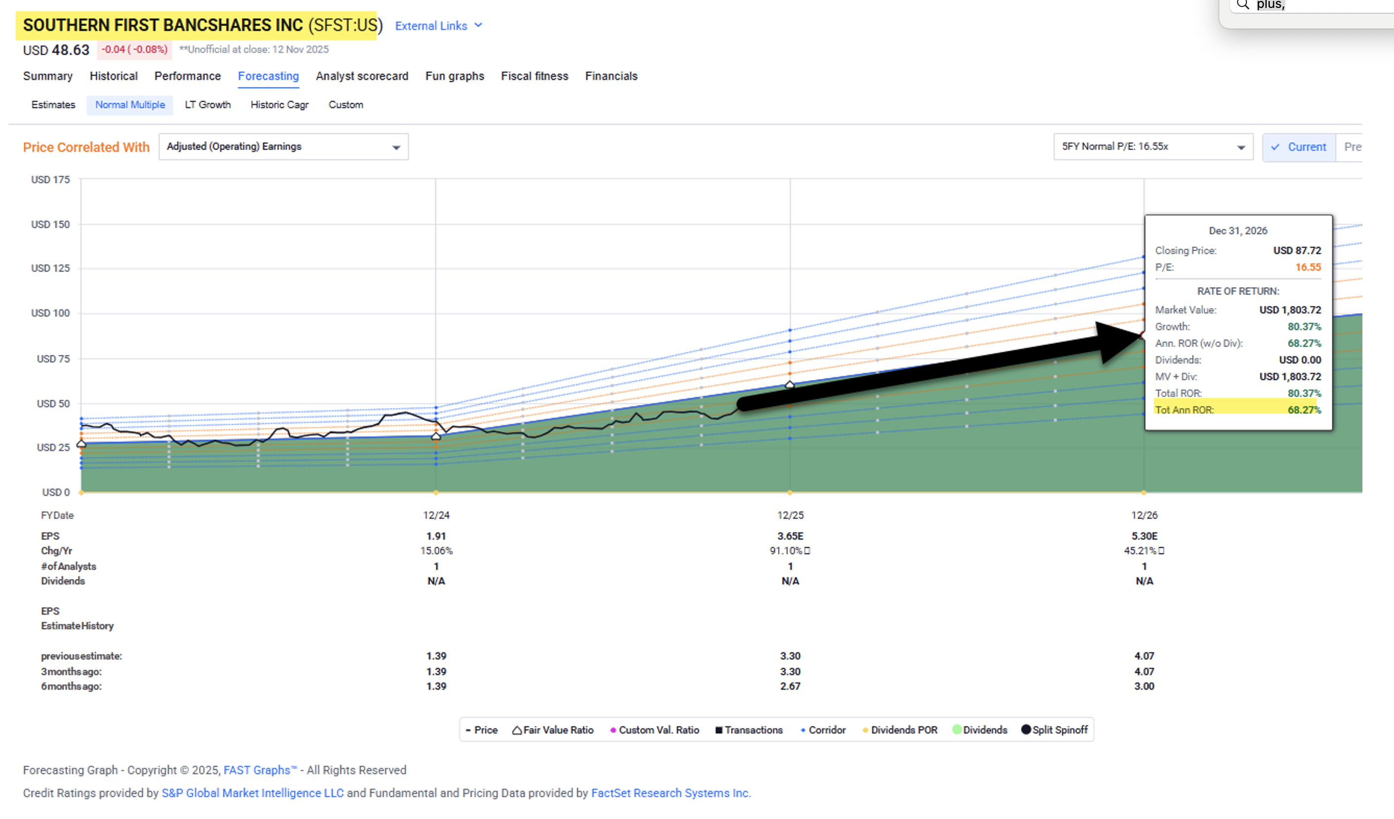 Again, there are just two analysts covering Southern First. And only one has provided consensus growth estimates for 2026 and 2027.