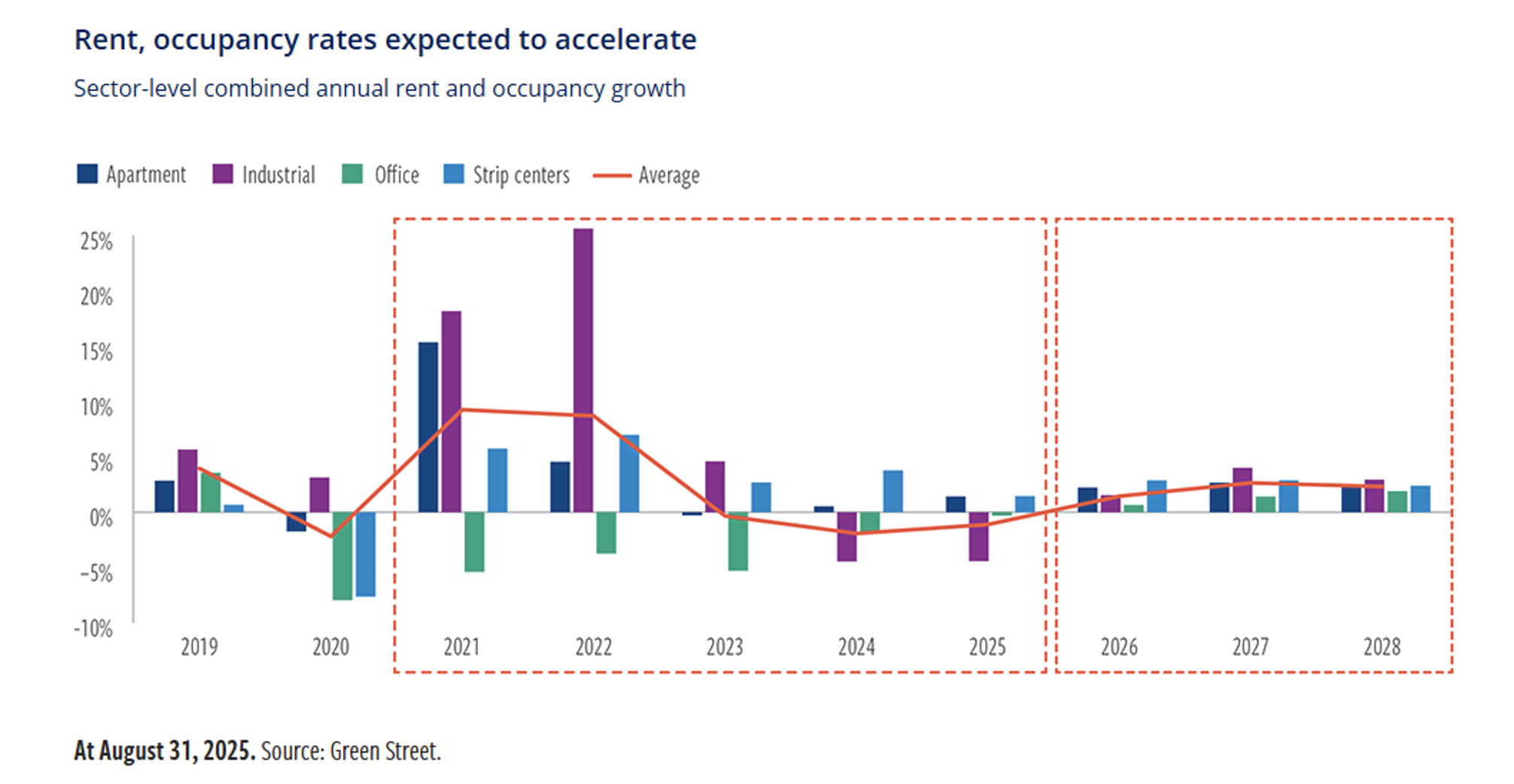 We expect listed REIT earnings growth to see a similar acceleration, from 3.3% this year to 7.6% next year and 7.5% in ’26 and ’27, respectively. That clarity should serve as a near-term catalyst for performance in the listed market.