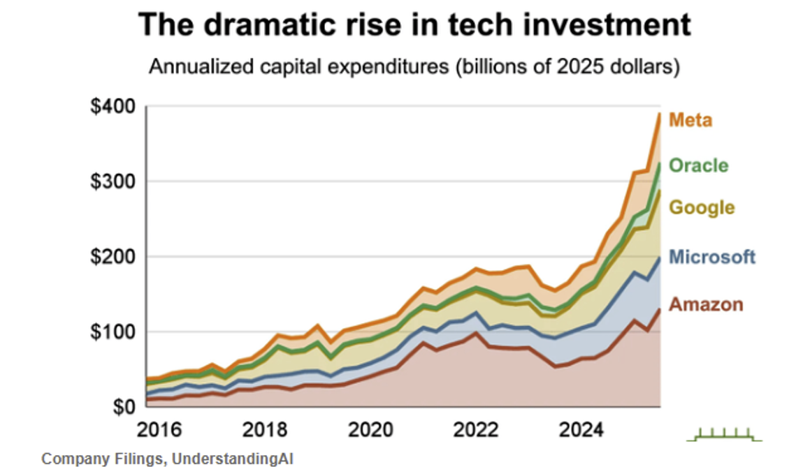The top five tech giants, like Meta, are all hyperscalers in the data-center world. They currently account for more than a third of all S&P 500 capital expenditures.