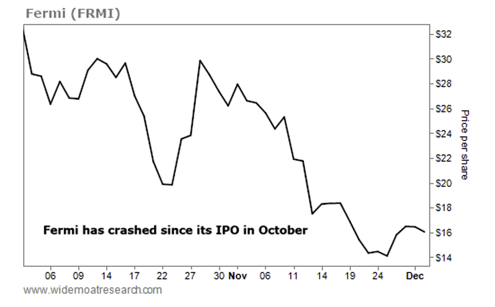 So it makes complete sense that Fermi shares have cooled off almost 50% since its IPO.
