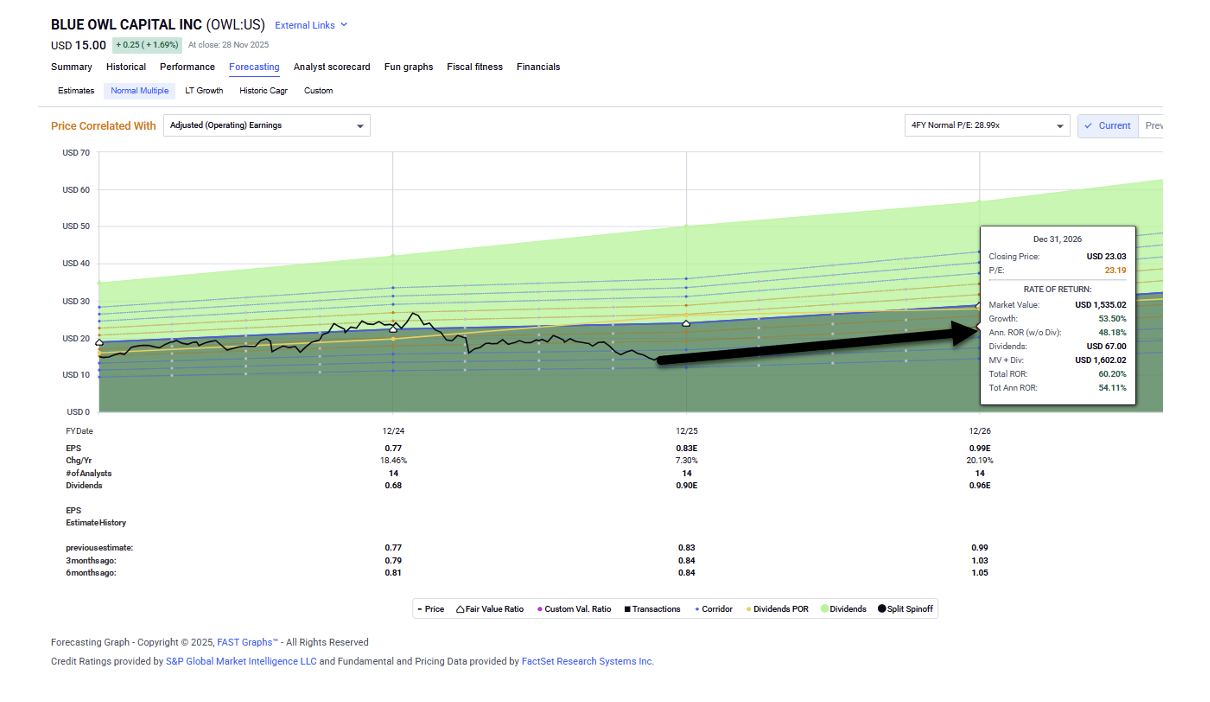 And Blue Owl is busy partnering with them. So, it only makes sense that analysts expect Blue Owl to grow 20% in both 2026 and 2027.