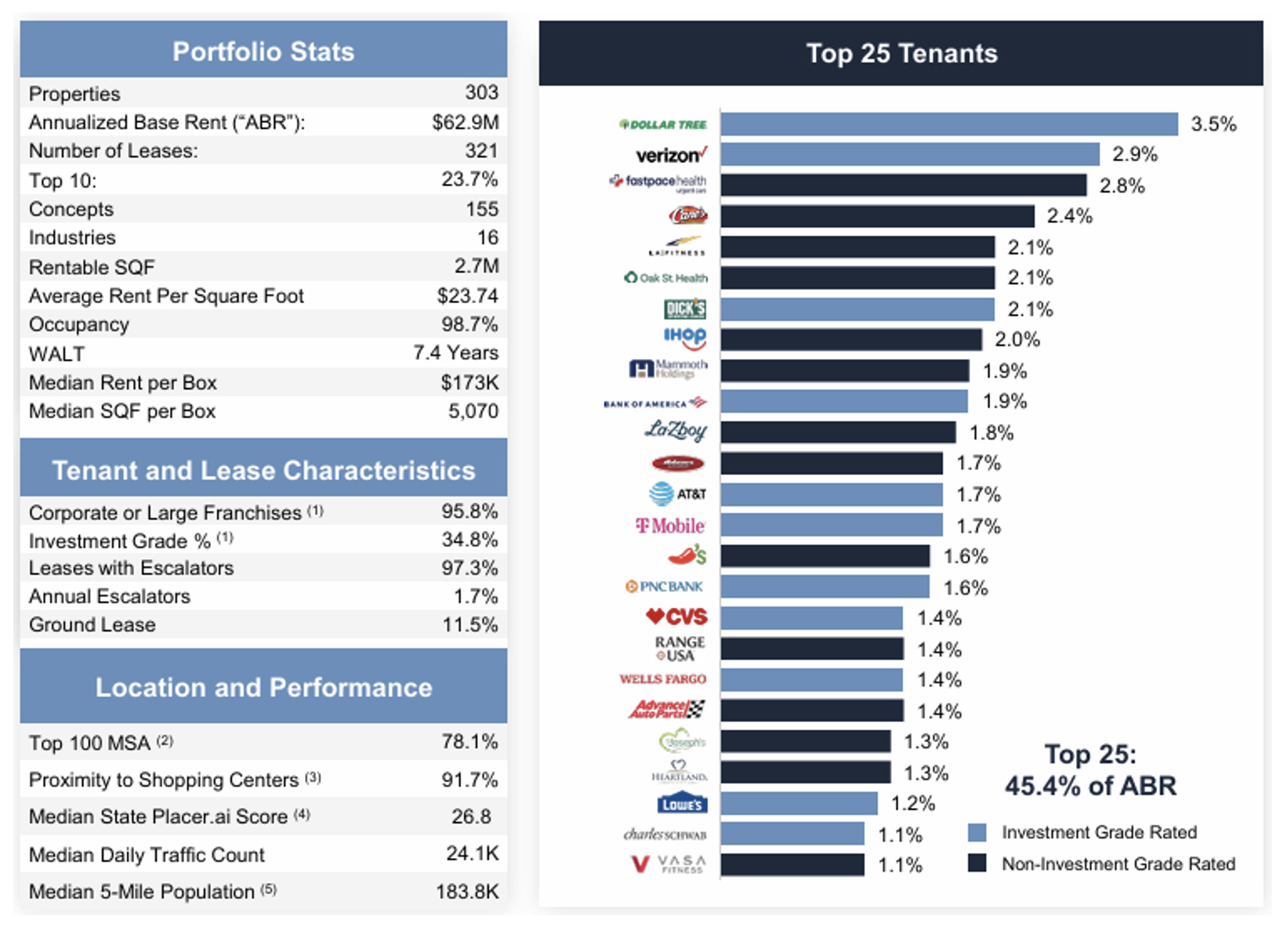 There would be no concentration risk in that case, since FrontView’s portfolio is highly diversified. As shown below, its top 25 tenants represent 45.4% of its portfolio.