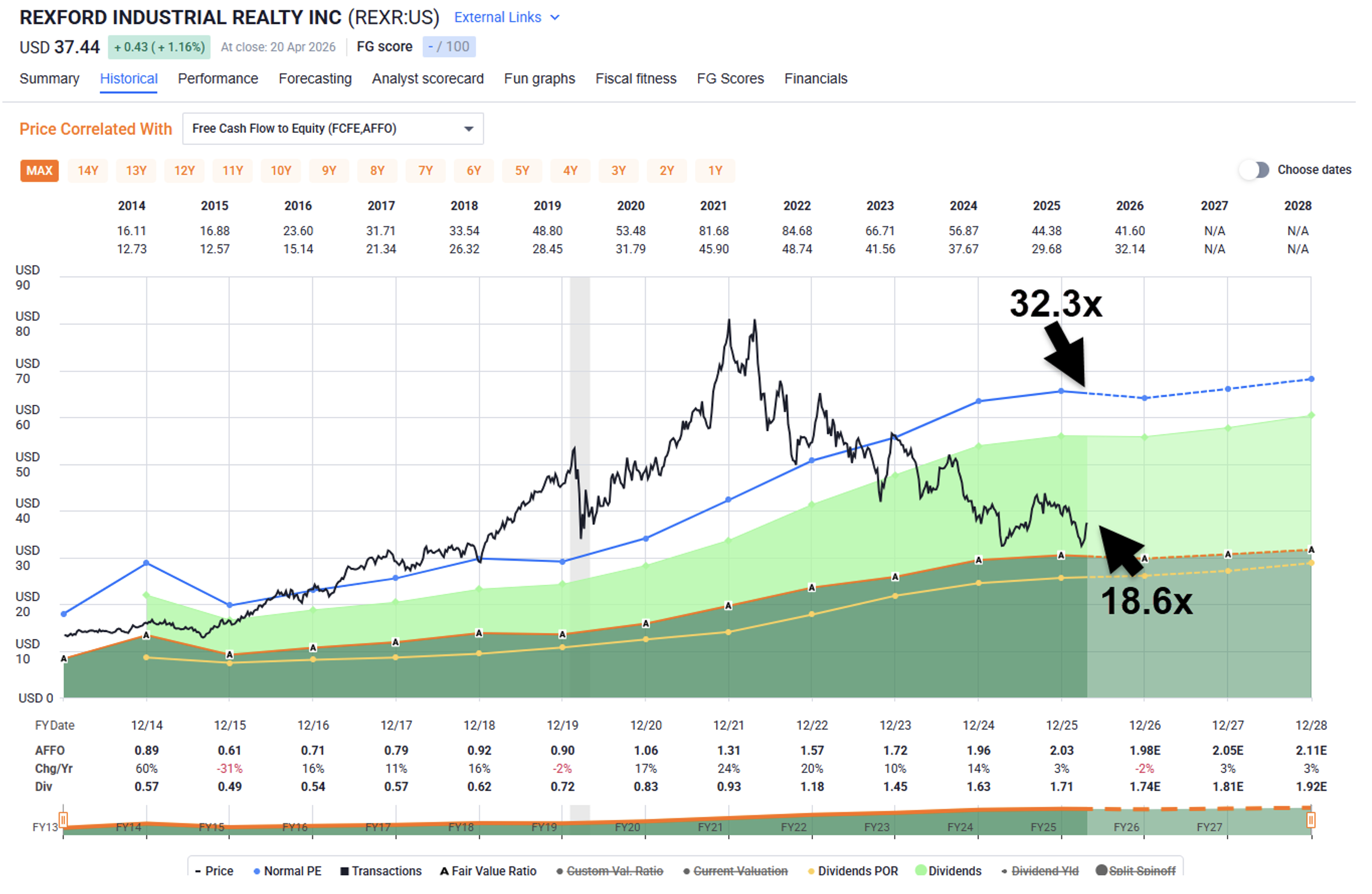 Naturally, that all gives it a higher valuation, making it more costly to acquire. Rexford is currently trading at $37.44 per share with a P/AFFO multiple of 18.5 times and a dividend yield of 4.7%.