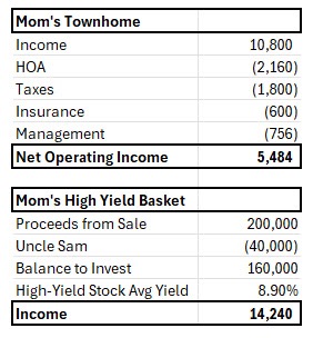 She has owned this townhome for over 25 years now and is currently renting it at a below-market rate. So below market, in fact, that after deducting HOA expenses, taxes, and management fees… she has very little left over for herself.
