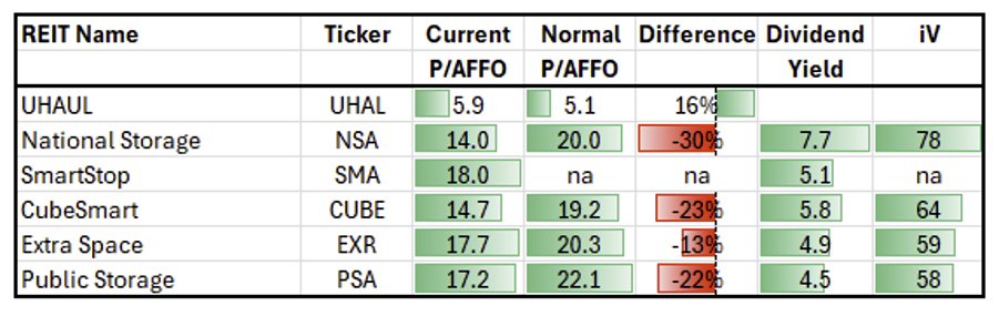 [Notes: SmartStop held its IPO in April 2025. Therefore, we don’t have enough data to determine a “normal” valuation. iV refers to value score.]