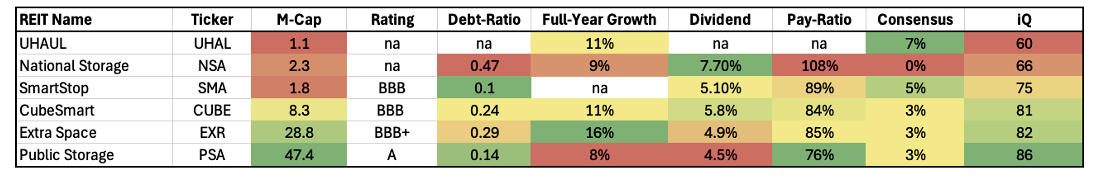 When it comes to the self-storage space, including U-Haul, here’s how these players rank: