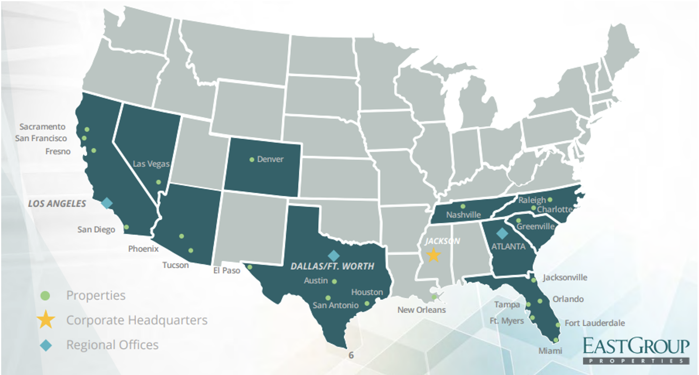 Based on the aforementioned results from Prologis, Rexford, and First Industrial… I expect similar outperformance from fellow industrial REIT EastGroup Properties (EGP), which focuses on high-growth states like Florida, Texas, Arizona, California, and North Carolina.