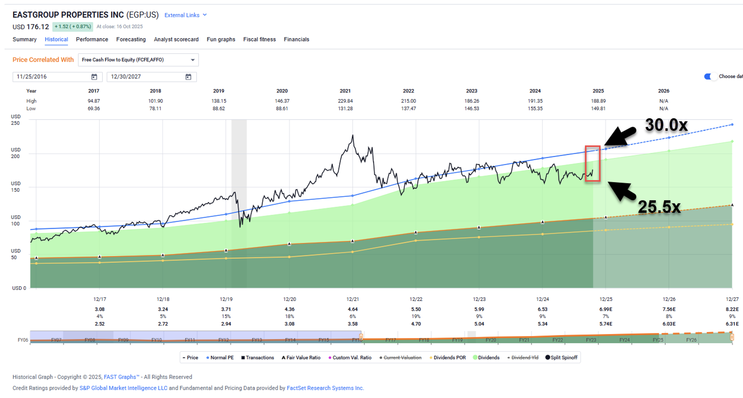Plus, EGP’s dividend yield is 3.5%. So you get a nice bonus while you wait on Mr. Market to come to its senses.