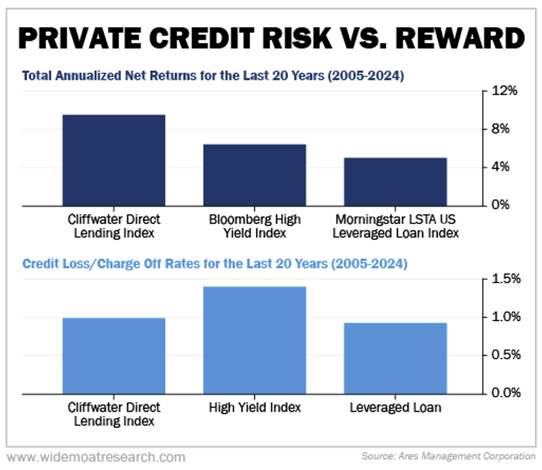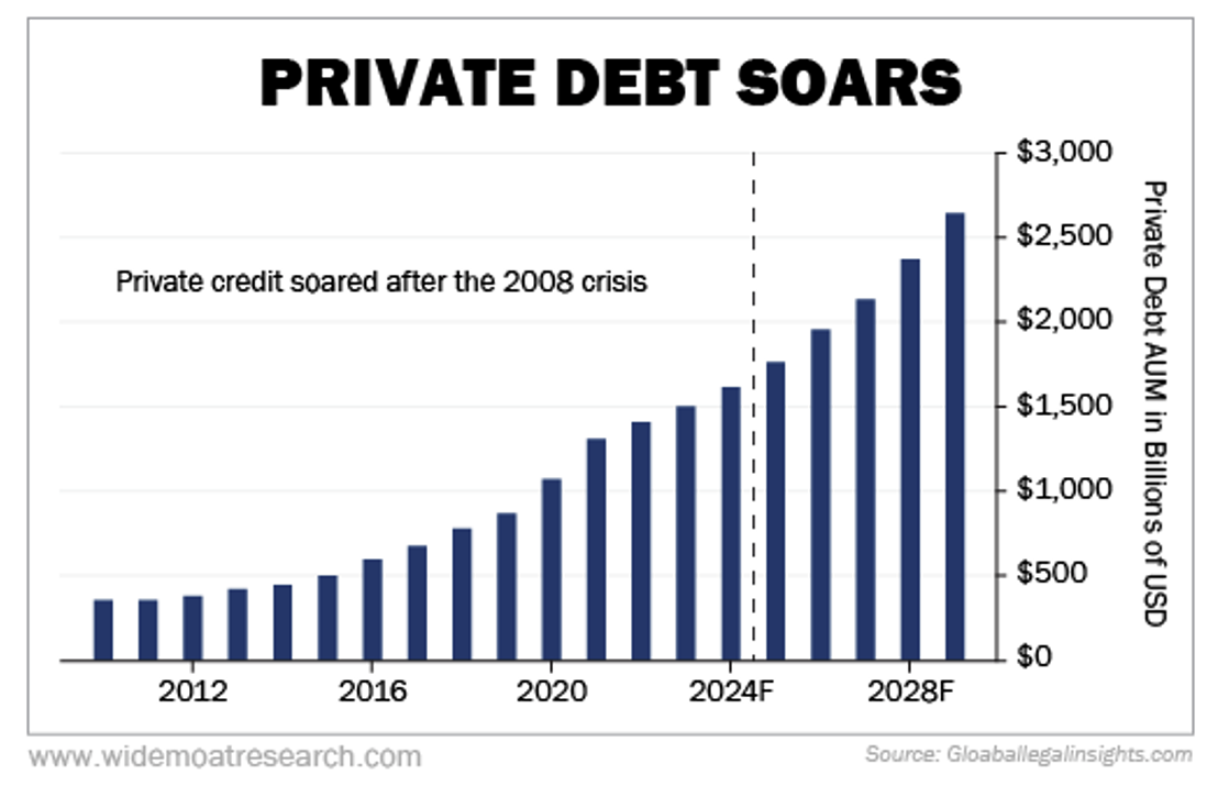 This created a tsunami of opportunity for private credit. That’s why it has grown from an around $250 billion business in 2010 to close to $2 trillion today. And it’s expected to keep growing at a rapid pace.
