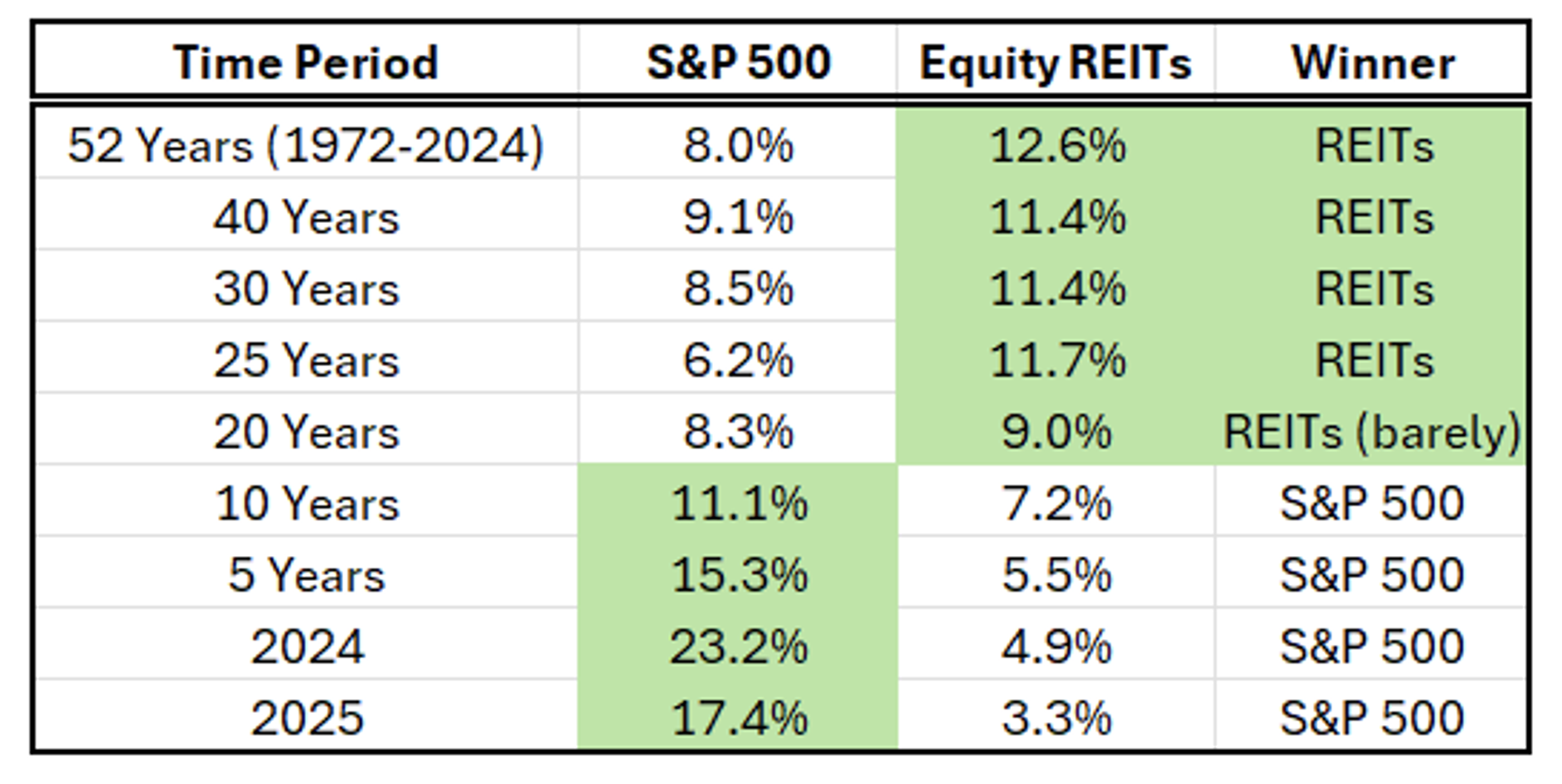 Better yet, over the past 30 years, REITs have delivered strong double‑digit average annual total returns of about 12% across the various subsectors. This places them among the top-performing major asset classes over multidecade periods.